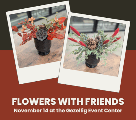 Erika De Jong from The Floral Market will be leading this event at the Gezellig Event Center in Orange City. Tables will seat 4.
